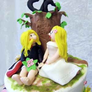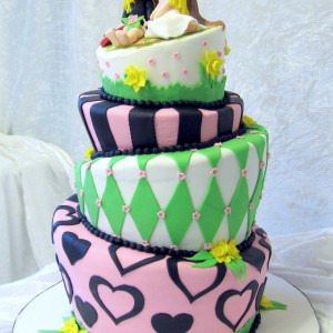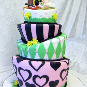 Øverste etage: dummy cake med håndlavet topfigur lavet i fondant og gumpaste.